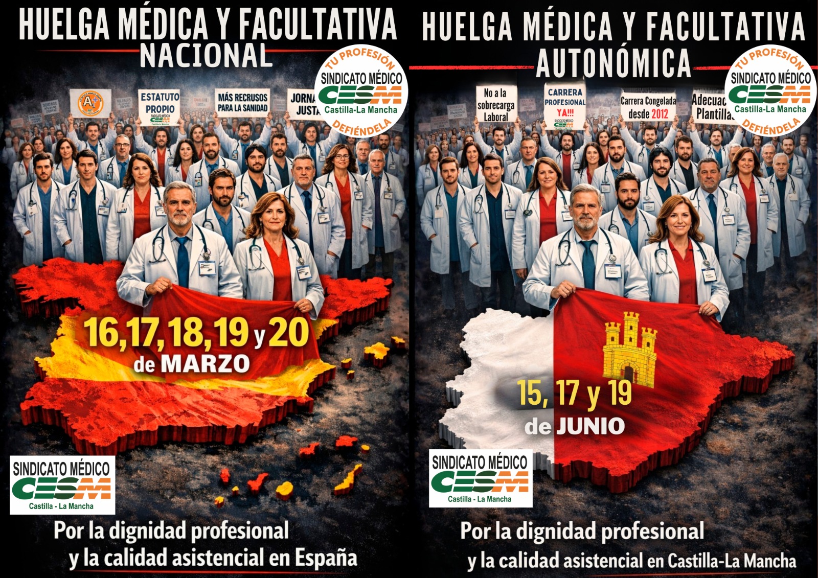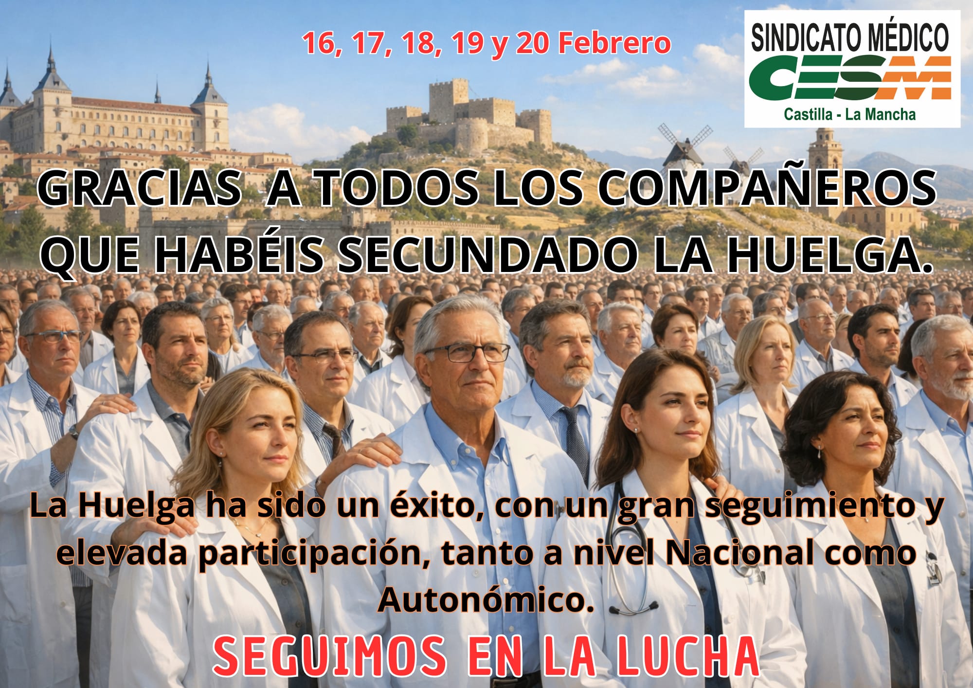 Gracias a todos los Médicos, Facultativos, Residentes y Estudiantes de Medicina que, la semana pasada, habéis demostrado unidad, compromiso, responsabilidad y dignidad profesional. Vuestra implicación, vuestra presencia y vuestra voz han sido clave.Cuando la profesión se une, se hace visible, se escucha y se respeta. Desde el Sindicato Médico de Castilla-La Mancha (CESM CLM) valoramos