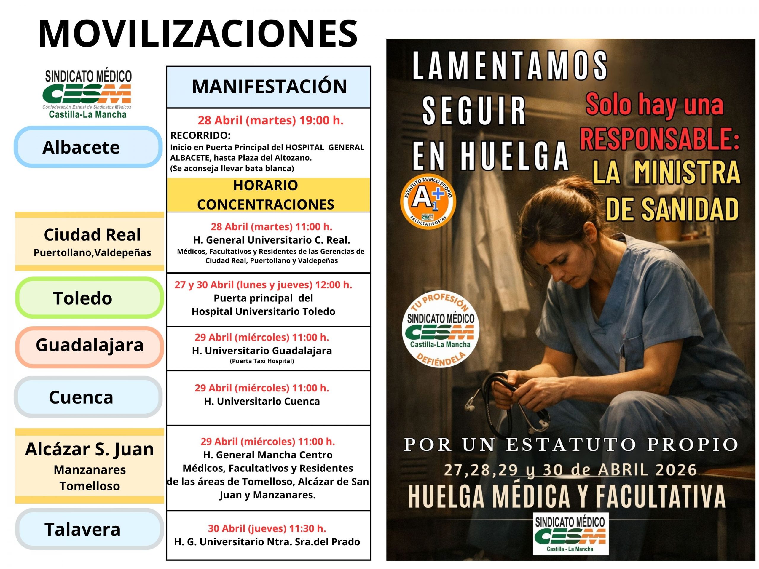 Concentraciones en Hospitales de toda Castilla-La Mancha durante la semana de huelga nacional indefinida El Sindicato Médico de Castilla-La Mancha CESM, convoca a Médicos, Facultativos
