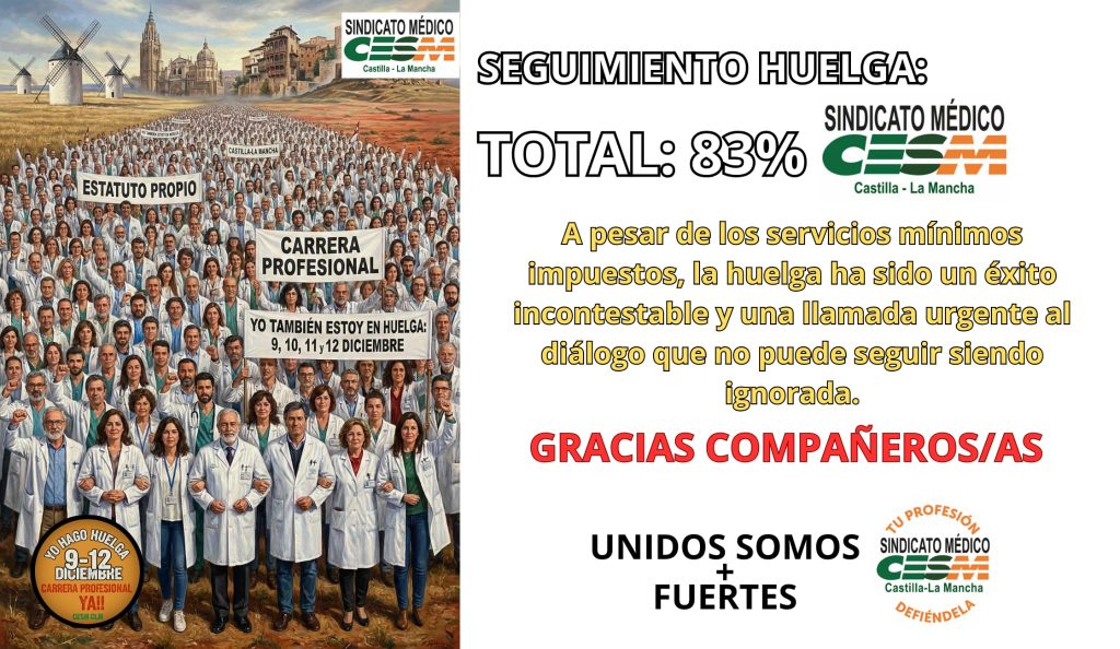 Rueda de Prensa 8 de enero de 2026 Sede CESM nacional Madrid Los Sindicatos Médicos constituyen un frente común y anuncian nuevas movilizaciones para exigir un Estatuto Propio Las organizaciones médicas advierten de una escalada del conflicto ante la falta de voluntad negociadora del Ministerio de Sanidad Las organizaciones sindicales médicas CESM (Confederación Española de […]